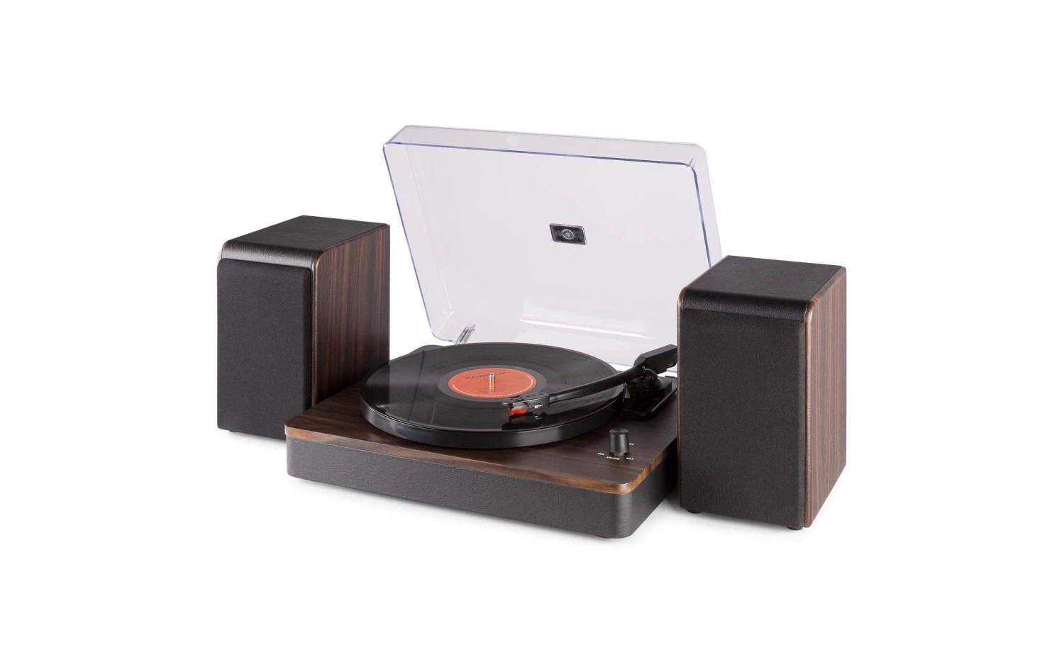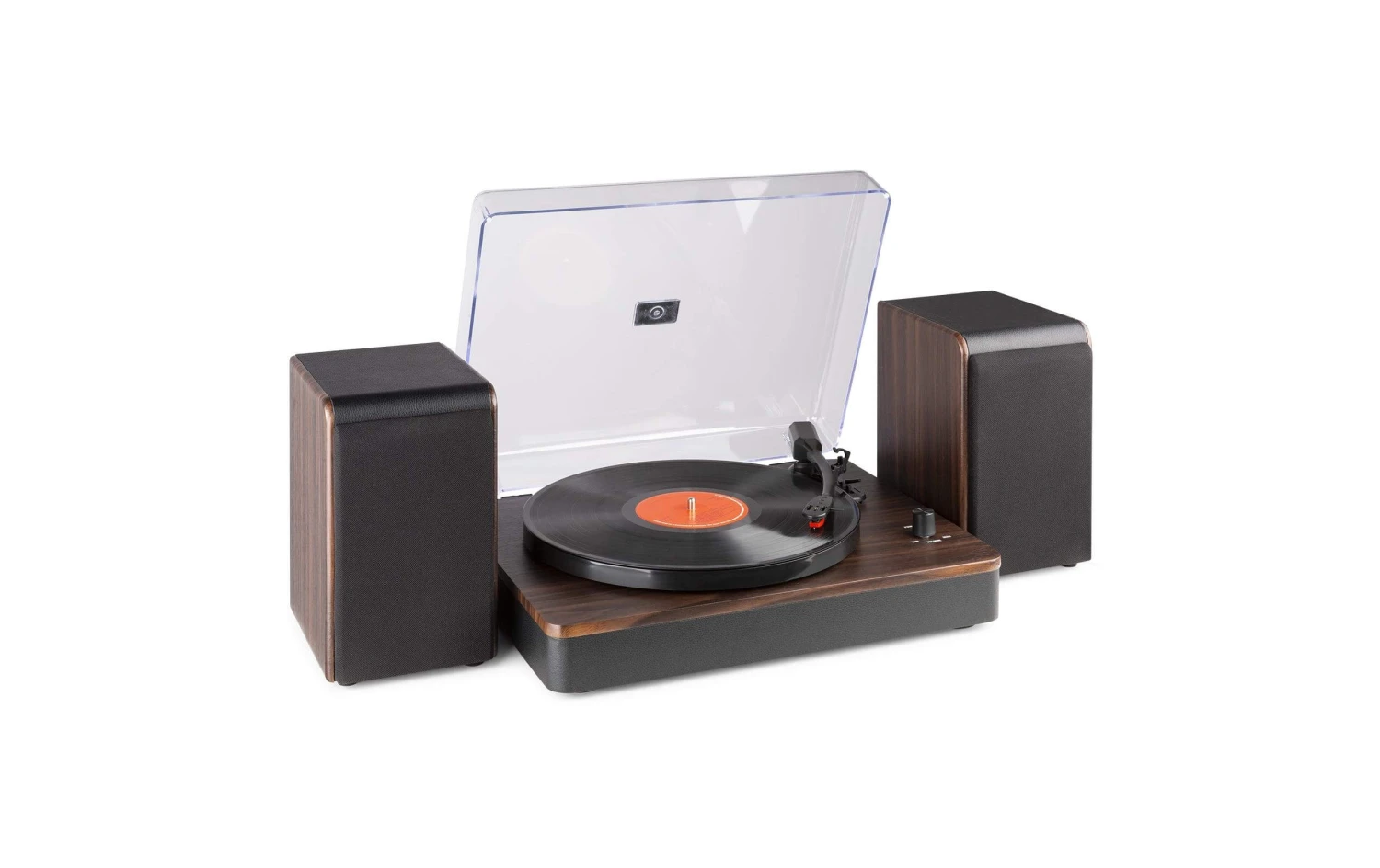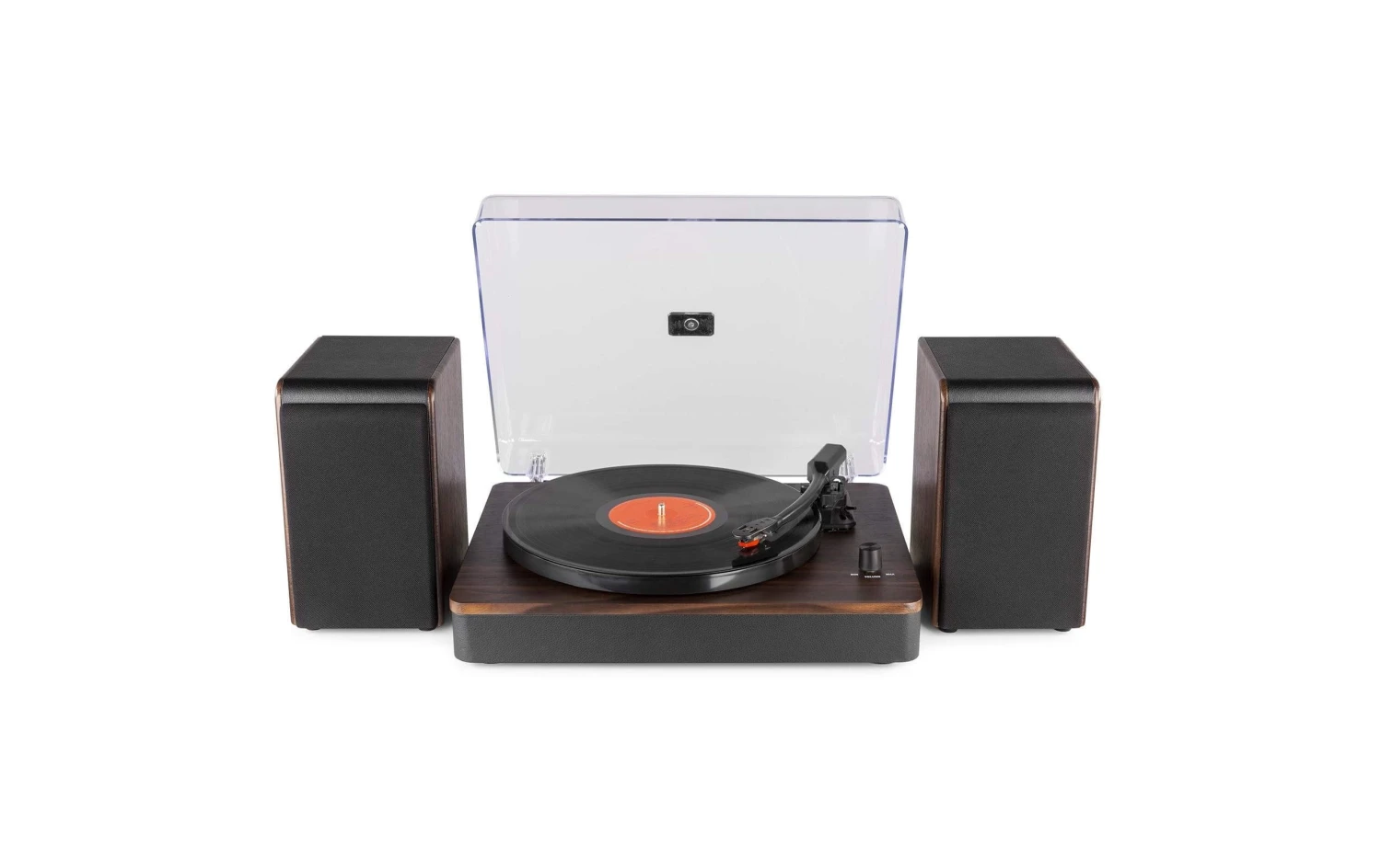 – Eleganter Plattenspieler mit zwei Vollbereichslautsprechern