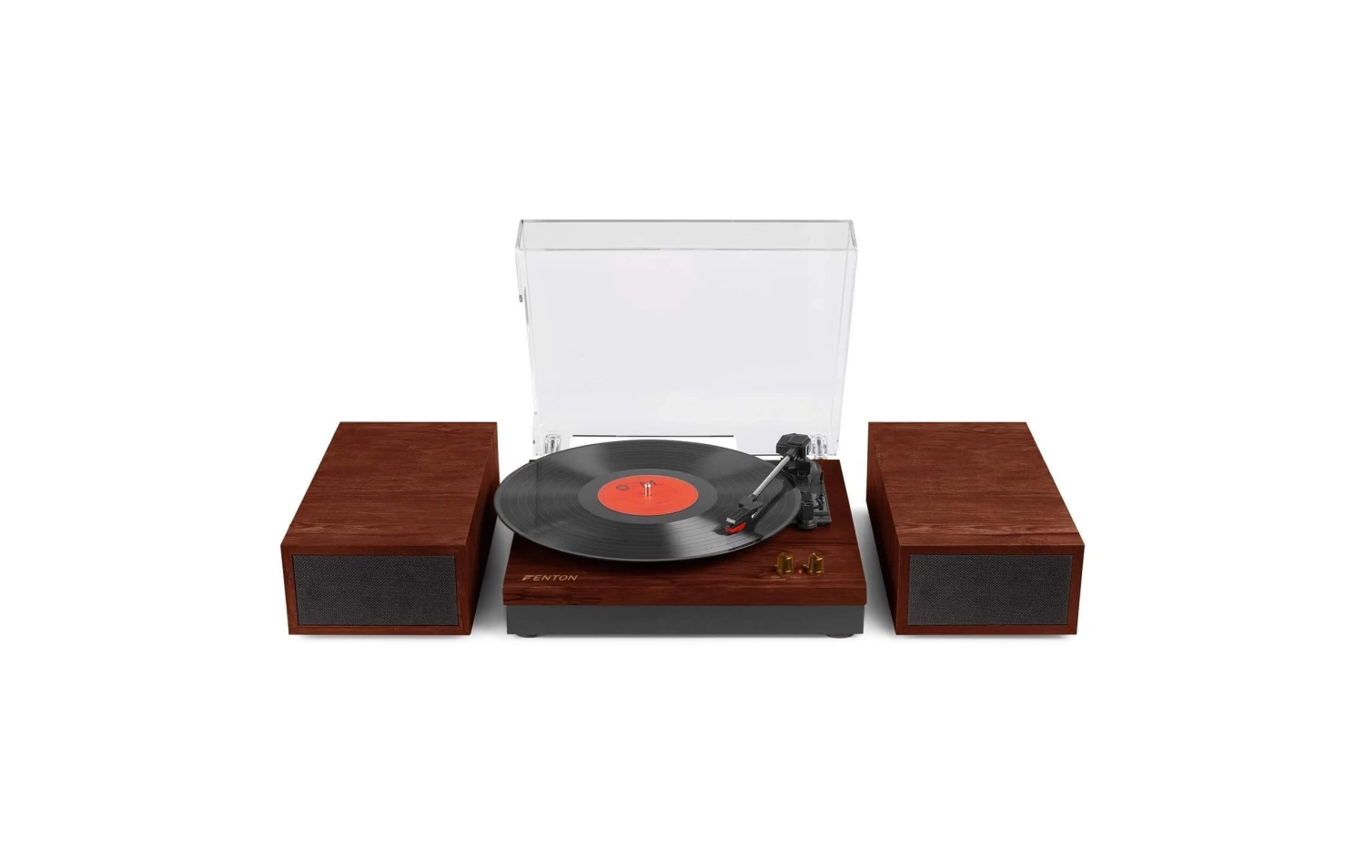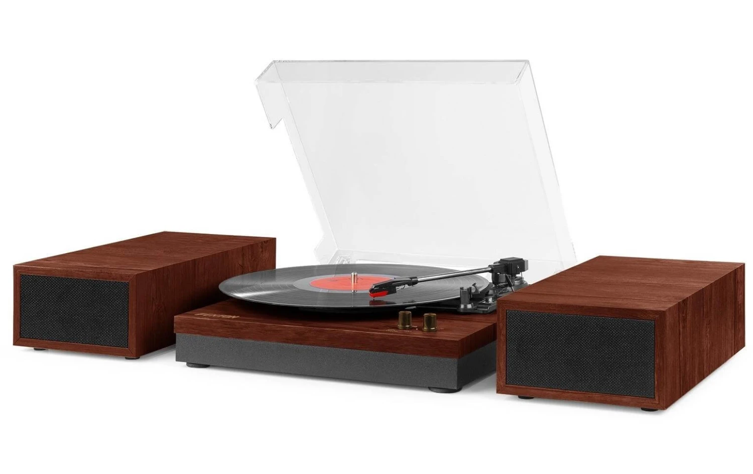 Plattenspieler mit eingebautem Verstärker in elegantem schlichten Design